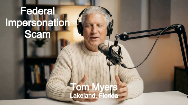 Federal Scam Personal Senior ScamsBy Tom MyersFebruary 27, 2026Federal Impersonation Scam – Personal Story CTI Video Series Personal Story about the scam by Tom Myers